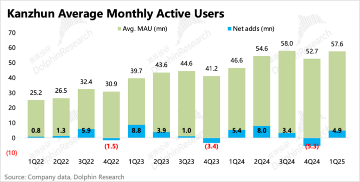 一季度春招旺季,求职者的活跃度环比提升,Boss直聘实现月活5760万,净增了490万用户,高于市场一致预期。结合销售费用依旧大幅度同比下滑来看,说明当下的用户增长依靠了更多的自然流量,BOSS直聘在用户尤其是求职者心中的品牌心智非常稳固。