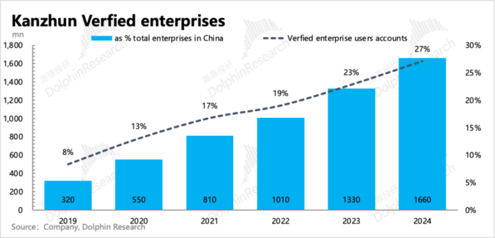 截至2024年末,BOSS直聘已渗透的企业数量,达到了全行业的27%。这个体量下,平台生态已经相当稳固。