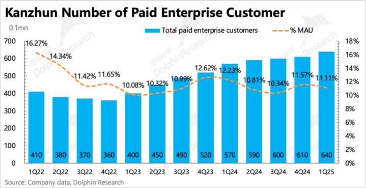 不过唯一好的一点是,付费企业数没掉,环比净增加30万家,从单均付费来看,应该还是靠的大企业的稳健。总的来说,无论是企业粘性还是C端用户粘性,还在变好就不是坏事,只是大环境使然下的周期性压力。