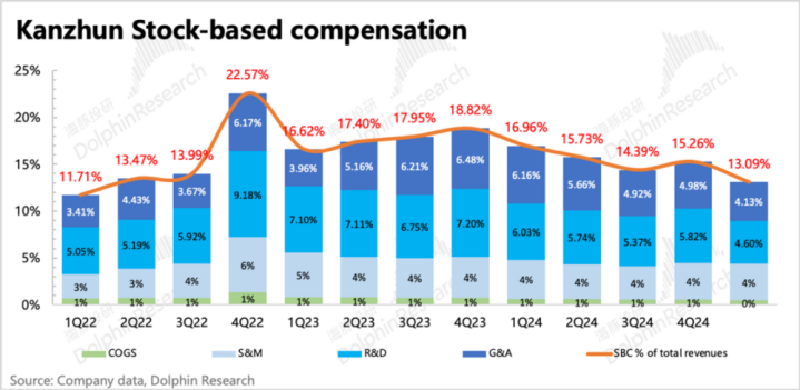 3.继续控费提效:外部压力如此,公司能做的就是加速内部提效。除了优化空间比较大的销售费用外,一季度研发费用也开始了同比下滑,如果再剔除AI增量投入,那实际传统研发成本收缩得更厉害。管理费用(剔除SBC)则因为海外扩张继续增长,但也基本与收入同速,保持费率稳定。