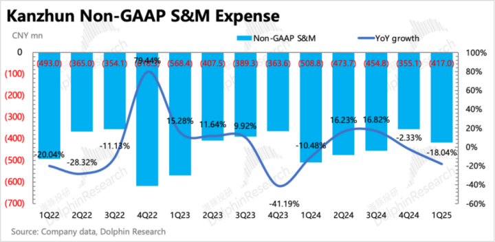 以往一季度是BOSS直聘大肆投放揽客的时段,但这次则并未调整年初制定的收缩策略,继续减少15%(剔除SBC影响外,同比下降18%)。